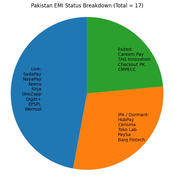 The compliance and pilot phase is where the first separations typically occur, and Pakistan’s data shows why. By Q2 FY24, SBP’s own reporting noted that digital transactions made up 82% of overall retail transactions during that quarter, up from 80% in the previous quarter. In other words, the machine was already running at scale. At the same time, SBP-linked reporting showed EMI registered e-wallets at 2.7 million in Q2 FY24 after a 15% quarterly increase, while branchless banking providers had around 67 million registered m-wallets. Those numbers alone explain the competitive terrain. EMIs are operating in a landscape where the mass market wallet base is already owned by branchless ecosystems and where the marginal cost of distribution is lower for incumbents than it is for new regulated payment entities. It also clarifies why several IPA-stage names can remain technically authorised but commercially muted: progress from approval to meaningful adoption is not simply a product question in Pakistan, it is a distribution and switching-cost question.